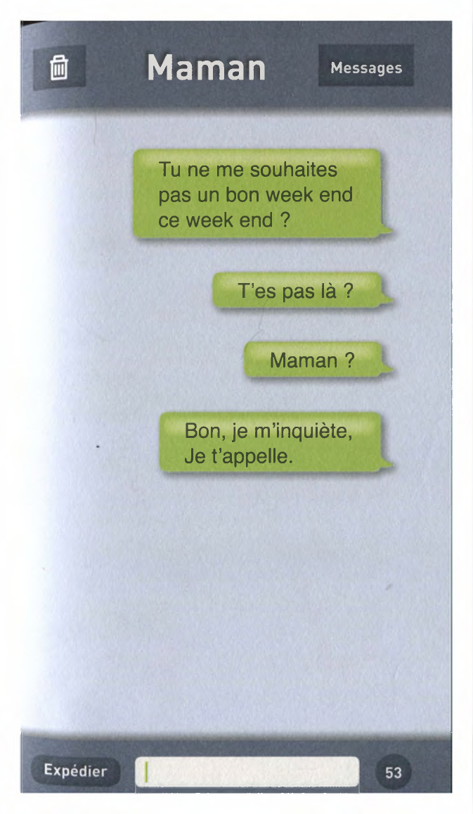 Avec Maman: Echange de textos entre Maman et son fils :
