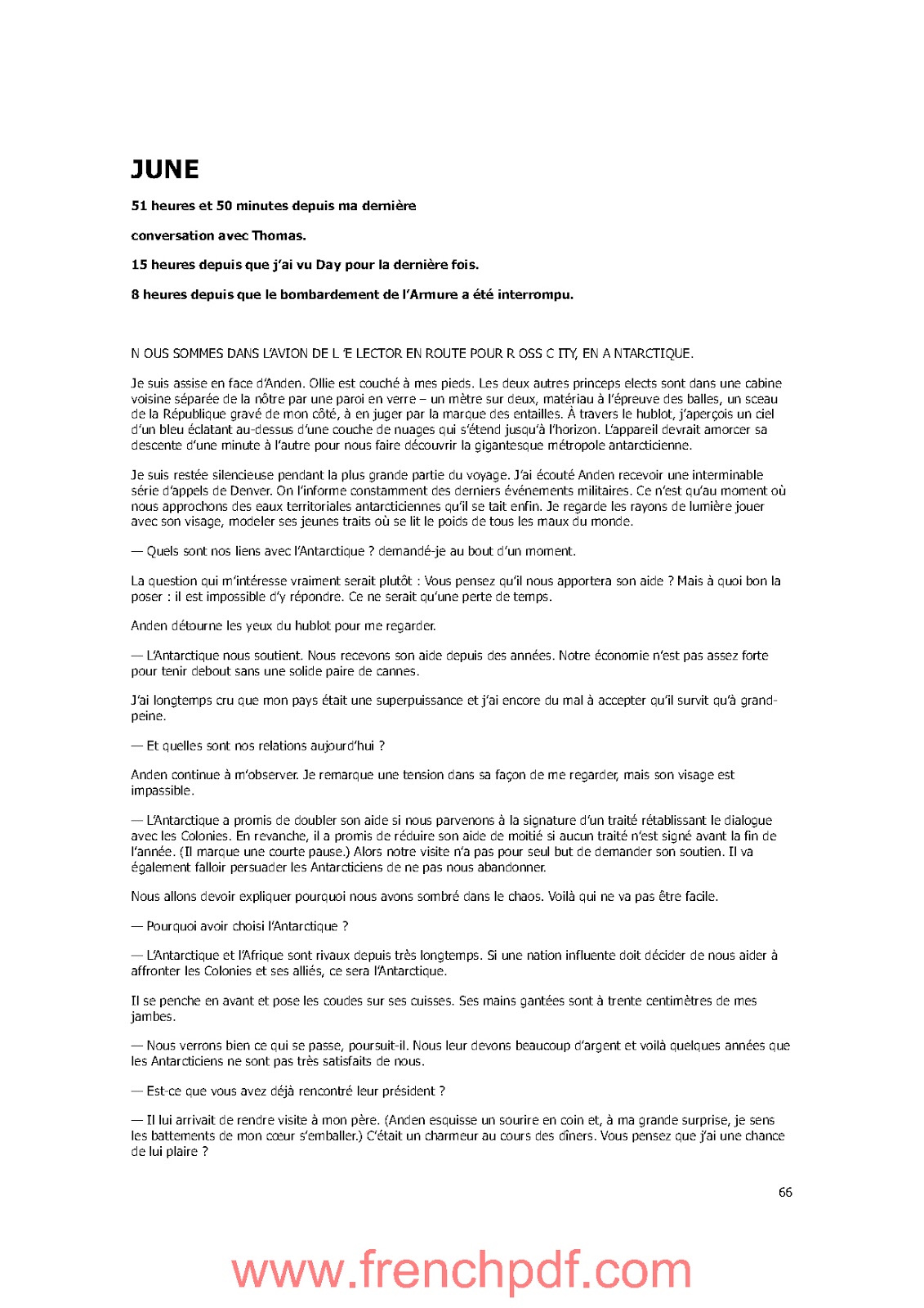 Cette nouvelle souche de peste est plus mortelle que jamais, et June est la seule qui connaît la clé de la défense de son pays. Mais sauver la vie de milliers de personnes signifiera de demander à celui qu’elle aime de renoncer à tout ce qu’il a.